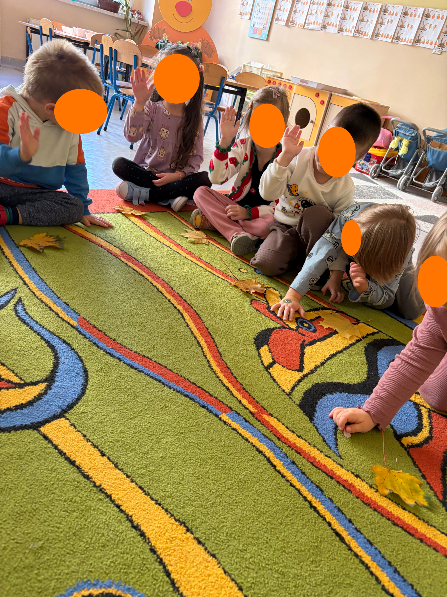 Podczas zajęć dzieci świetnie bawiły się jesiennymi liśćmi. Tańczyły przy muzyce, tworząc „liściowy taniec”, a szeleszczące liście stały się instrumentami do wydawania różnych dźwięków.